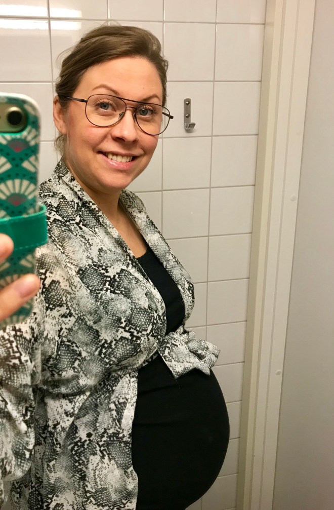 Nu kĂ€nner jag ju hur hon bökar runt varje dag och hon ger mig fjĂ€rilar i magen varje gĂ„ngđ Ăven om det gör ondare överallt nu, sĂ„ mĂ„r jag inte illa lika mycket som i början av graviditeten och nu inser vi att det börjar komma nĂ€ra att snart Ă€ntligen fĂ„ trĂ€ffa henneđ
